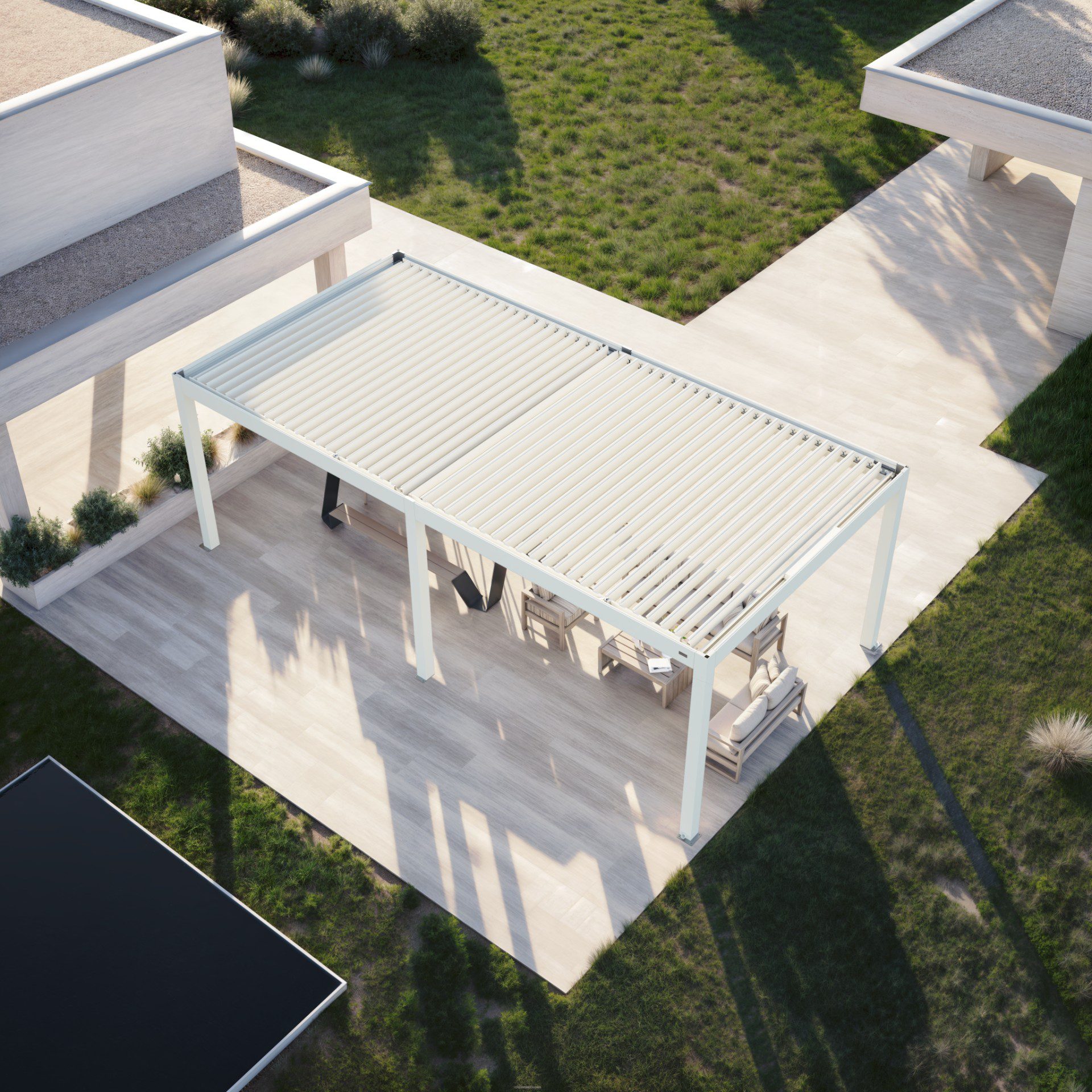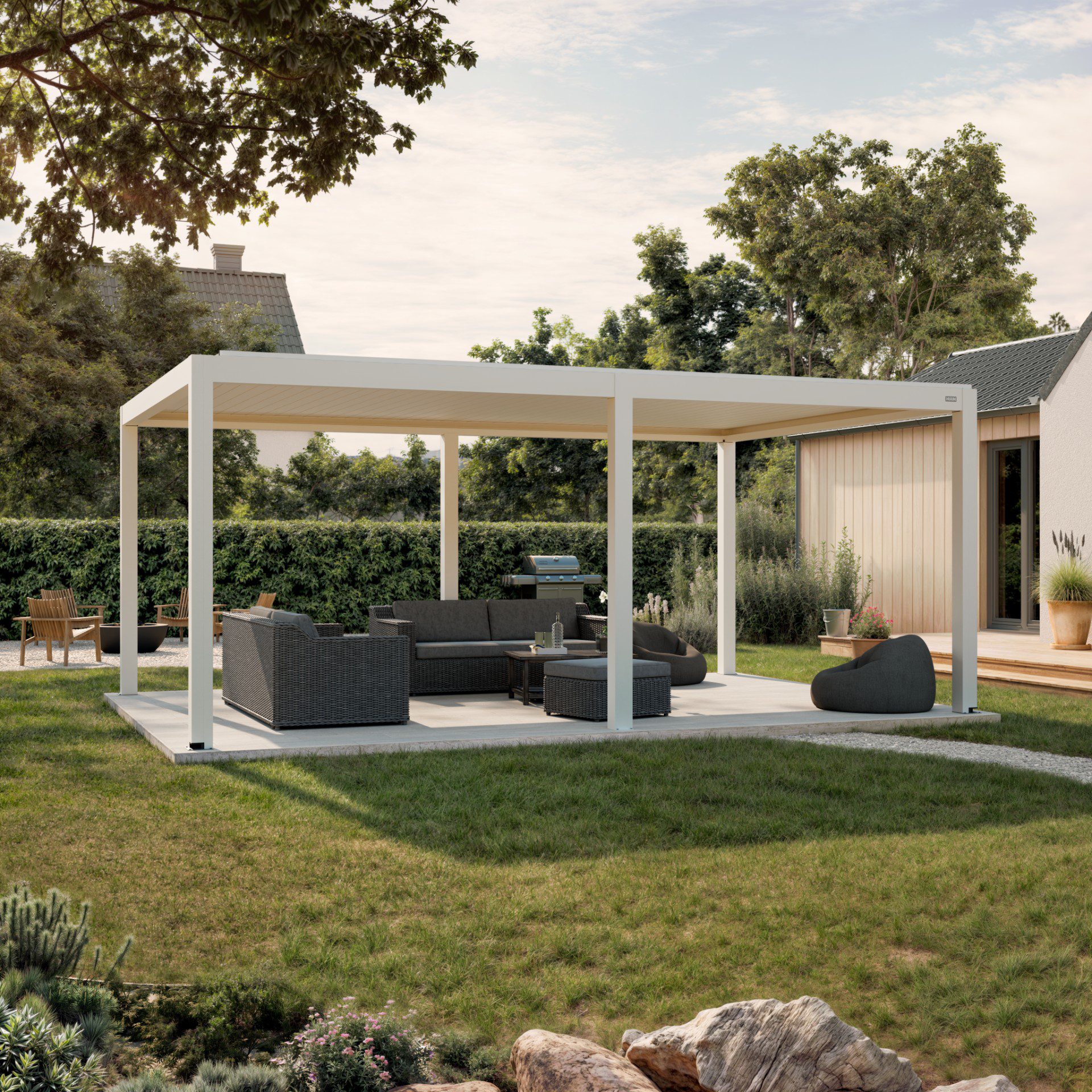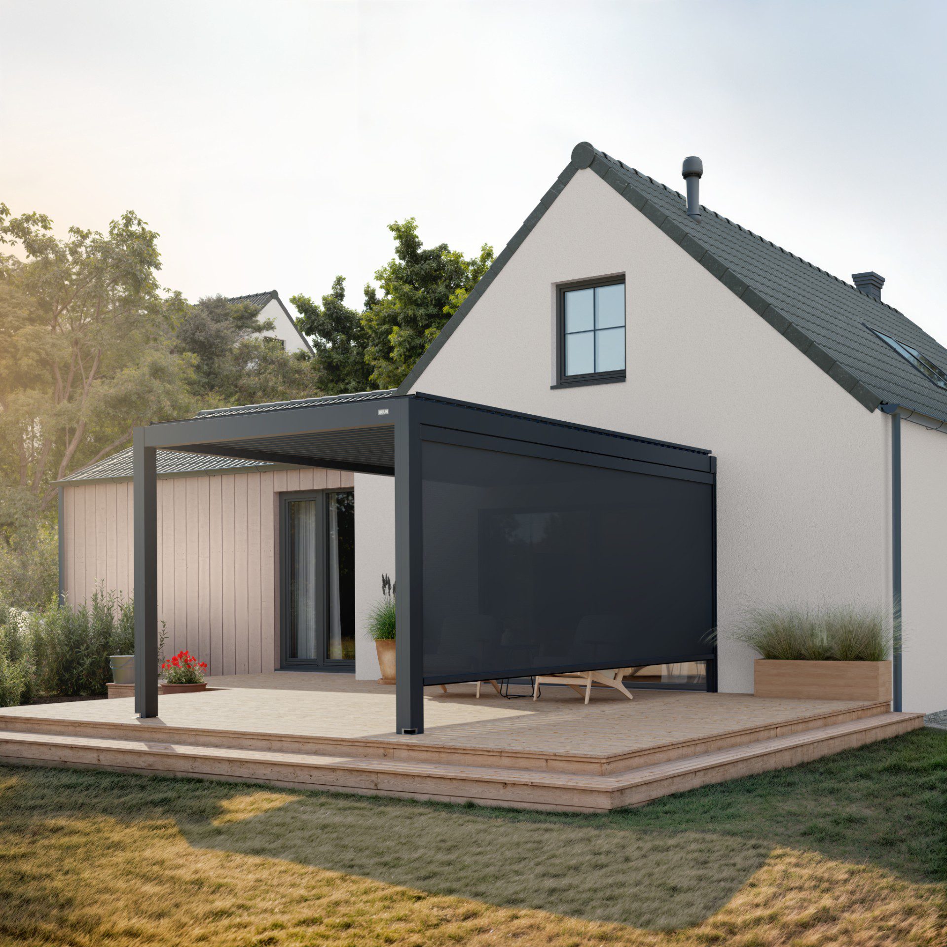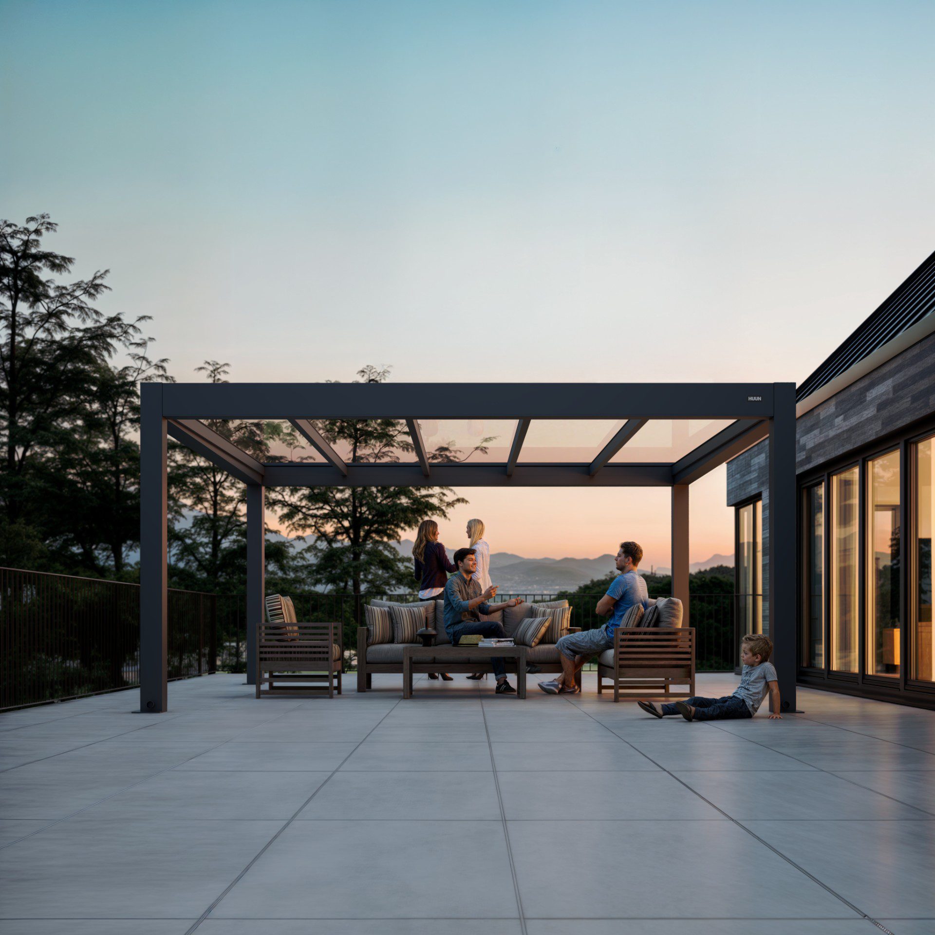For Huun, we created an extensive series of visualizations of their pergolas, which we placed in various environments according to the client’s choice. We always tried to make the settings and the overall result stand out so that the product itself would be highlighted. In several renders, we also worked with the placement of realistic people to complete the atmosphere.